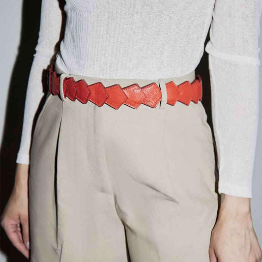 Cinto Fino Feminino de Couro Espanha Vermelho