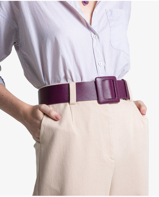 Cinto Fino Feminino de Couro Krystallos Roxo