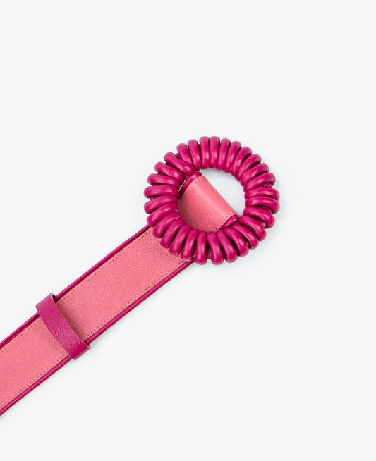 Cinto Fino Feminino de Couro Espanha Rosa Claro