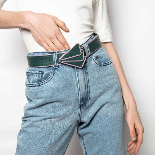 Cinto Fino Feminino de Couro Krystallos Verde Agua