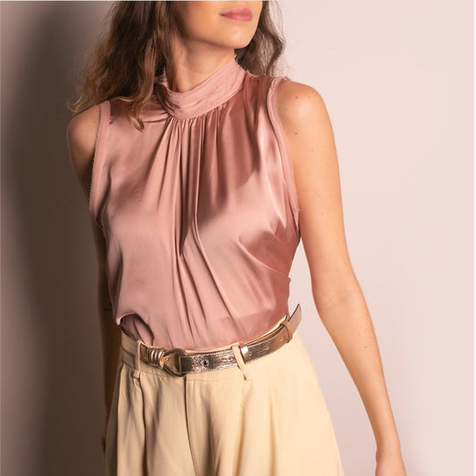 Cinto Fino Feminino de Couro Krystallos Rosa Claro