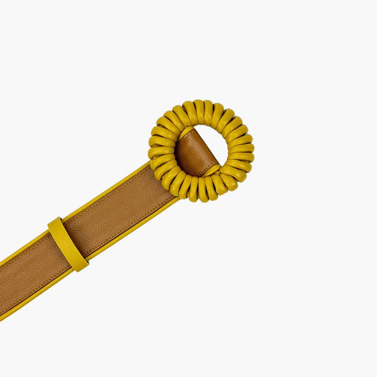 Cinto Fino Feminino de Couro Espanha Mostarda