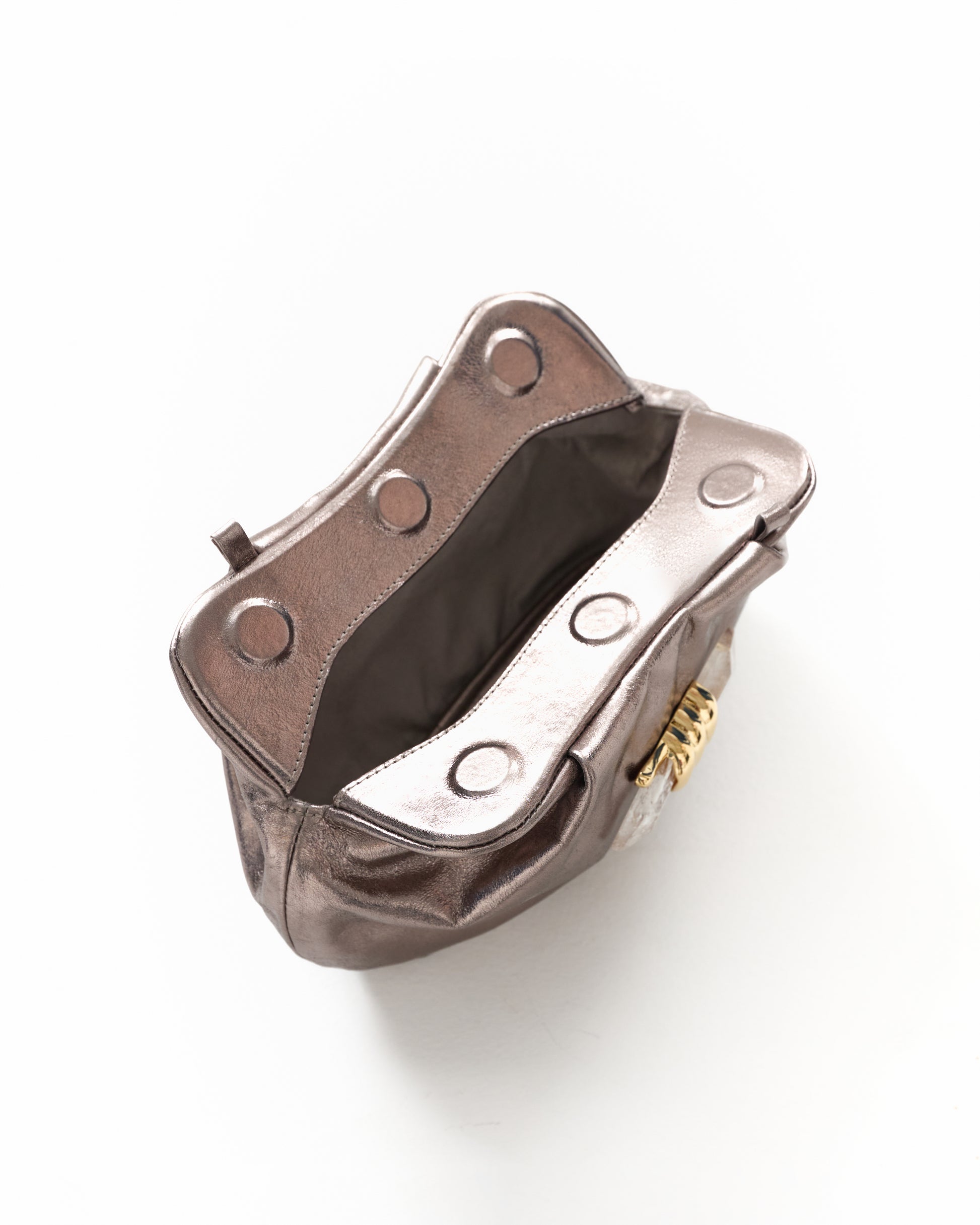 A Clutch Aurum da collab Soleah + Maria Dolores traduz a união entre design escultural, sofisticação e funcionalidade em uma peça atemporal e marcante. Desenvolvida em couro legítimo, a clutch possui estrutura elegante e acabamento minucioso, pensada para acompanhar diferentes momentos com versatilidade e presença.