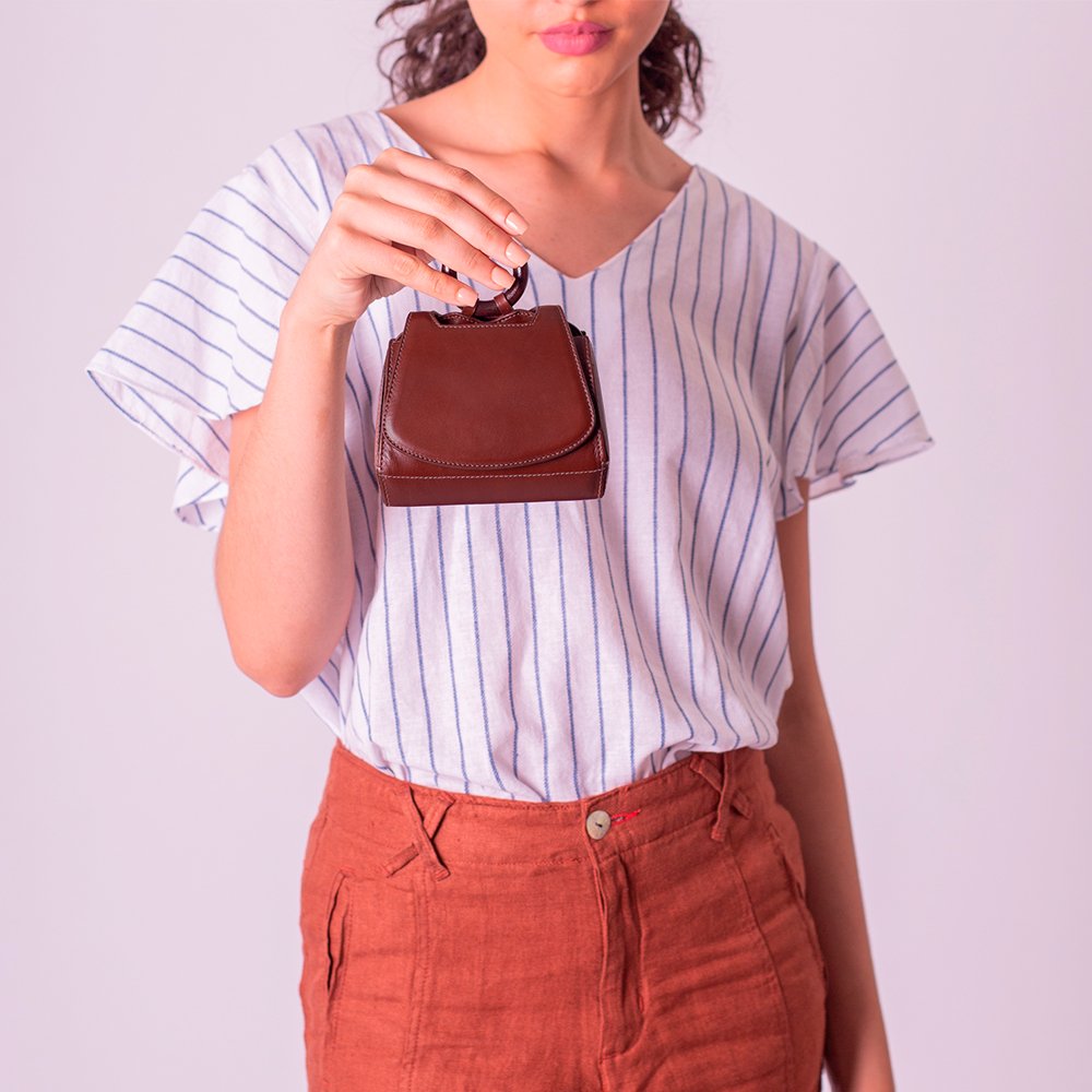 Pequena no tamanho, imensa no estilo, a Micro Paseo é puro charme em couro premium e madeira natural, ideal para complementar o look com personalidade.