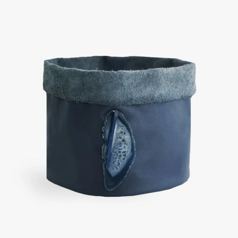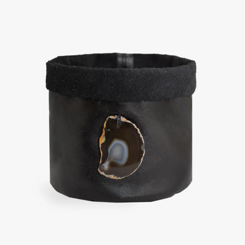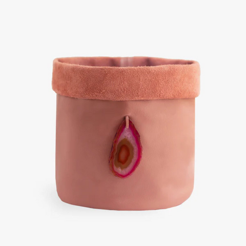 Cachepot de couro com pedra natural, a ideia é combinar cada cor com uma pedra em ton-sur-ton e dar ainda mais charme e significado para a peça. O tamanho M é ideal para você usar em vasos mais robustos para plantas que necessitam de mais espaço para a raiz. A utilização pode ser diversificada, dependendo da sua criatividade para combinar com itens da sua casa e escritório. O cachepot de couro branco vem combinando com a chapa de ágata marrom que é a pedra da plenitude.