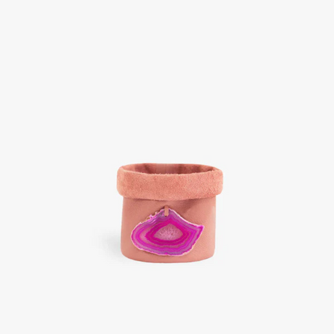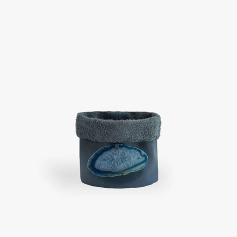 Cachepot de couro com pedra natural, a ideia é combinar cada cor com uma pedra em ton-sur-ton e dar ainda mais charme e significado para a peça. O tamanho PP é ideal para você usar em vasos menores ou até mesmo criar novas possibilidades com outros itens da sua casa ou escritório, como por exemplo, um porta canetas ou até um porta pincéis de maquiagem. O cachepot de couro branco vem combinando com a chapa de ágata marrom que é a pedra da plenitude.