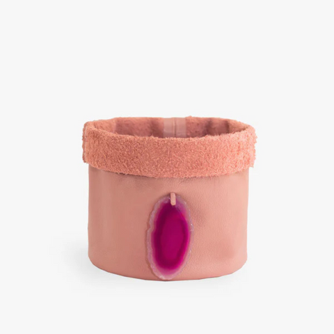 Cachepot de couro com pedra natural, a ideia é combinar cada cor com uma pedra em ton-sur-ton e dar ainda mais charme e significado para a peça. O tamanho P é ideal para você usar em vasos mais baixos. A utilização pode ser diversificada, dependendo da sua criatividade para combinar com itens da sua casa e escritório. O cachepot de couro azul vem combinando com a chapa de ágata azul que é a pedra capaz de trazer conforto emocional.