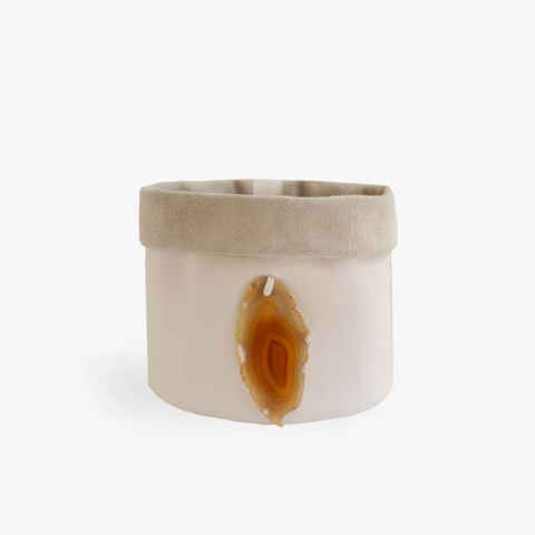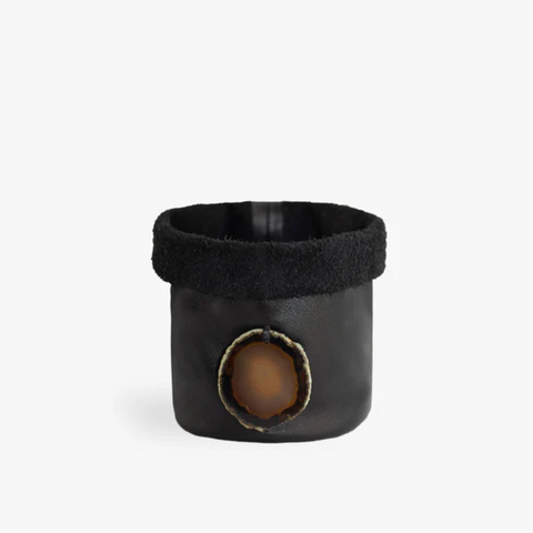 Cachepot de couro com pedra natural, a ideia é combinar cada cor com uma pedra em ton-sur-ton e dar ainda mais charme e significado para a peça. O tamanho P é ideal para você usar em vasos mais baixos. A utilização pode ser diversificada, dependendo da sua criatividade para combinar com itens da sua casa e escritório. O cachepot de couro rosa vem combinando com a chapa de ágata rosa que é a pedra do bem.