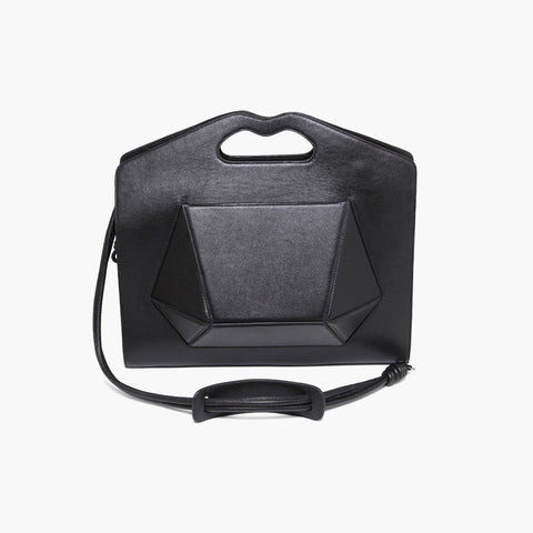 Possui fechamento em zíper com detalhe em rococó no puxador, alças de mão fixas e alça tiracolo removível e ajustável com suporte para o ombro.