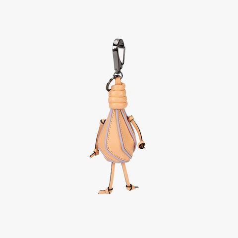 O chaveiro Calatravito, mascote da coleção Calatrava, foi projetado para ser usado como chaveiro ou charm de bolsa. Ele acompanha mosquetão e argola, oferecendo versatilidade e praticidade. O design é enriquecido por detalhes que refletem o DNA da Soleah, como o rococó, um clássico do nosso trabalho artesanal. O corpo do Calatravito é composto por recortes geométricos, com acabamento em cor contrastante no debrum, que é uma marca registrada da coleção.