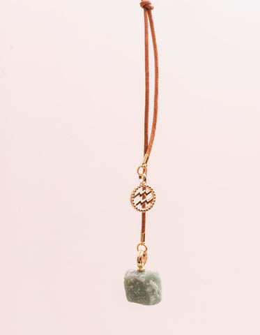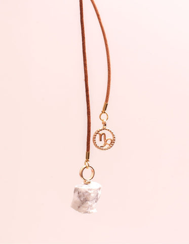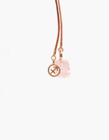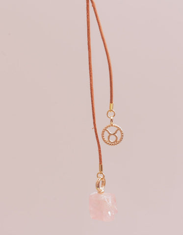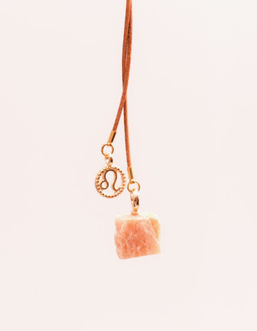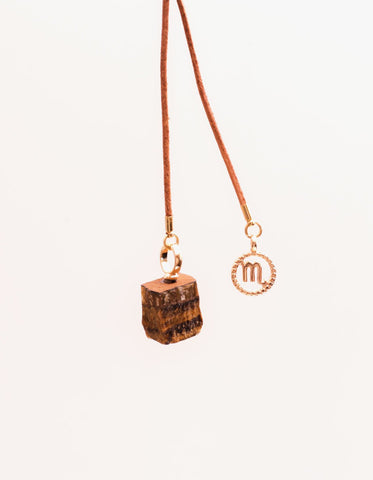Colar feito no fio de couro com pingentes de pedra natural e signo banhado a ouro 7 milésimos. Peça com regulagem, possibilitando várias formas de uso. Cada peça tem o pingente de pedra natural correspondente ao signo. Disponível em 12 variações. Vem em um porta colar feito em couro super fofo para você carregar seu colar ou outras joias.