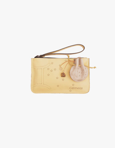 O Kit Constelación é uma combinação exclusiva que une funcionalidade e significado. Inclui uma necessaire de mão em couro, com gravação a laser do signo e sua constelação correspondente, perfeita para armazenar maquiagens, acessórios e bijuterias.