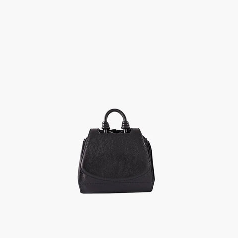 Com alça de mão fixa, alça tiracolo removível, além de mosquetão circular nas costas, oferece diferentes formas de uso. O fechamento magnético garante segurança, enquanto o forro em suede e o couro natural com acabamento impecável revelam cuidado e sofisticação.
