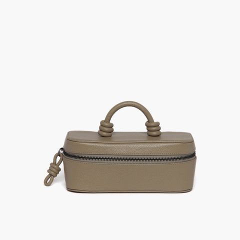 Possui compartimento interno único, ideal para acomodar itens essenciais de beleza com organização. Fechamento por zíper de metal YKK e forro em suede que reveste todo o interior. Design autoral, feita 100% à mão no Brasil.